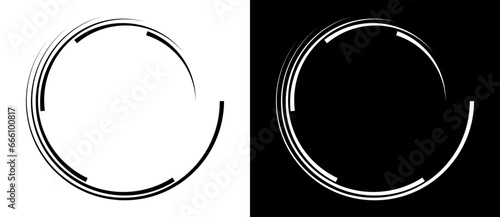 Abstract background with lines in circle. Art design spiral as logo or icon. A black figure on a white background and an equally white figure on the black side.