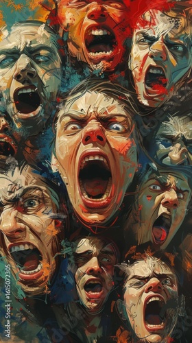 Abstract background with many faces expressing different emotions. Suitable for illustrations in psychological articles and art projects.