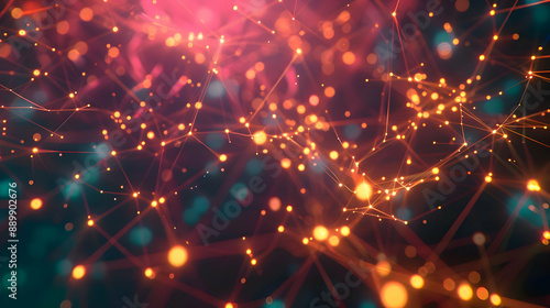 Abstract Background with Orange and Red Glowing Lines and Bokeh