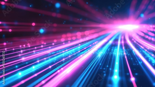 abstract background with pink blue glowing neon lines and bokeh lights. Data transfer concept