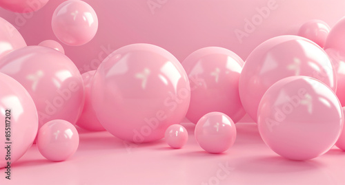 Abstract background with pink spheres, minimalistic 3D rendering of abstract shapes in pastel colors.