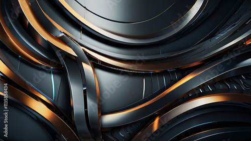 Abstract background with smooth black and gold waves flowing and creating elegant shapes