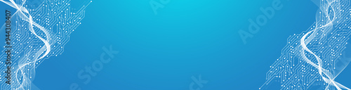 Abstract background with technology circuit board texture. Modern electronic motherboard texture. Engineering and communication concept for header, web banner, website, presentation.