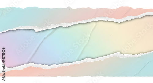 Abstract background with torn paper layers in pastel rainbow colors and soft gradient effect