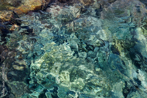 Abstract background with transparent ocean water over rocky bottom