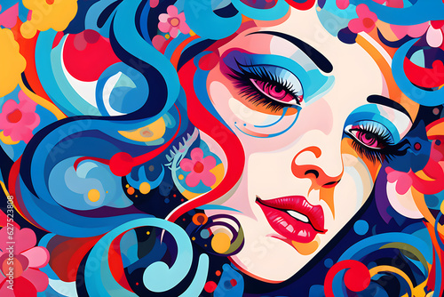 abstract background woman face pop art style flowers patterns illustrations background, AI generate