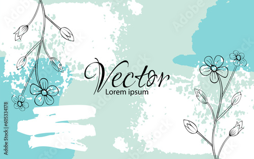 Abstract background.Luxury minimal style wallpaper with line art flower and botanical leaves,Organic splashes.