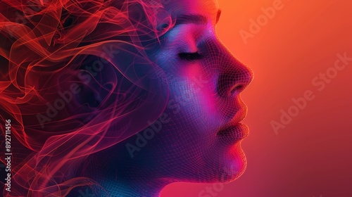abstract backgrounds, meshes, close up, focus on, vivid colors, Double exposure silhouette with meshes