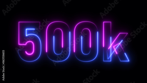 Abstract beautiful neon number 500K subscriber concept illustration background.