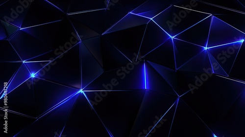 Abstract Black and Blue Geometric Pattern with Glowing Edges