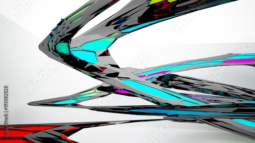Abstract black and colored gradient parametric interiorwith window. 3D illustration and rendering.