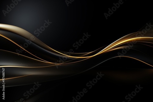 Abstract black and gold background with flowing lines.