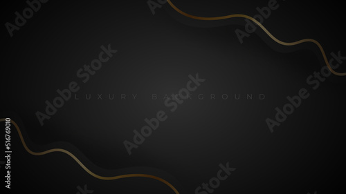 Abstract black and gold lines background. Dark wave luxury background with vector illustration.