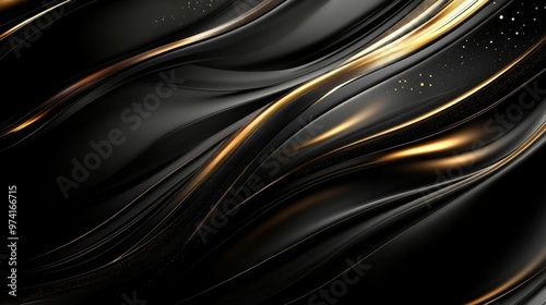 Abstract Black and Gold Waves with Golden Dust, abstract, black, gold, glitter