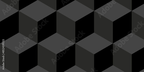 Abstract black and gray style minimal blank cubic. Geometric pattern illustration mosaic, square and triangle wallpaper. Seamless cube technology business concept.