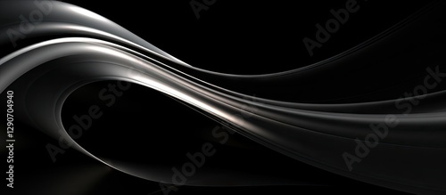 Abstract black and silver flowing wave design with smooth curves on a dark background, highlighting elegance and modern aesthetics.