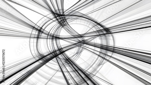 Abstract Black and White Circular Lines, Geometric Tunnel, Modern Art Design