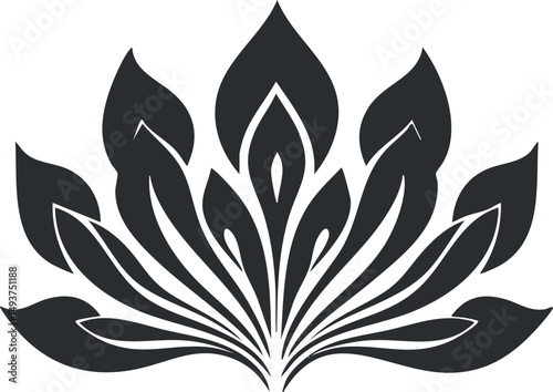 Abstract black and white floral design with stylized leaves forming symmetrical pattern