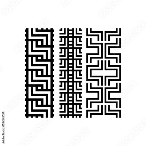 “Abstract black and white geometric maze pattern vector. Optical illusion design with bold lines and modern minimalist aesthetic, perfect for backgrounds, packaging, and textiles.”