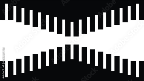 Abstract black and white graphic composition featuring vertical rectangles and contrasting shapes