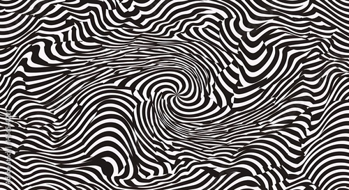 Abstract Black and White Swirling Illusion: A mesmerizing optical art piece showcasing dynamic lines and hypnotic patterns creating a sense of depth and movement.