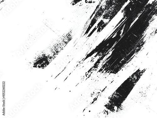 Abstract black and white texture with dynamic brush strokes and splatters.