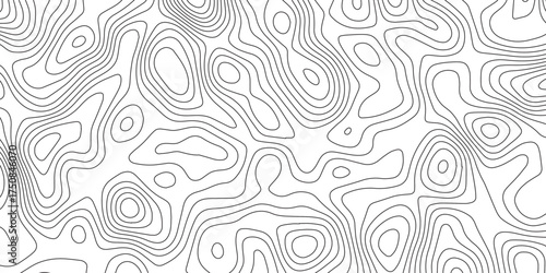 Abstract Black and White Topographic Contour Lines Seamless Pattern.