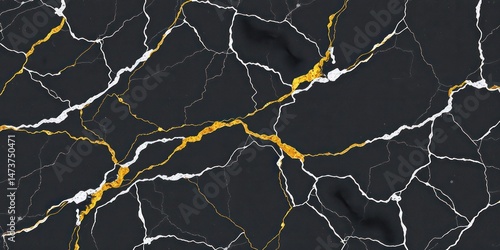 Abstract Black and White Veined Marble with Gold Accents for Design Projects