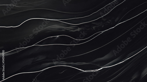 Abstract black and white waves with glossy textures create a dynamic visual flow, embodying elegance and modernity.