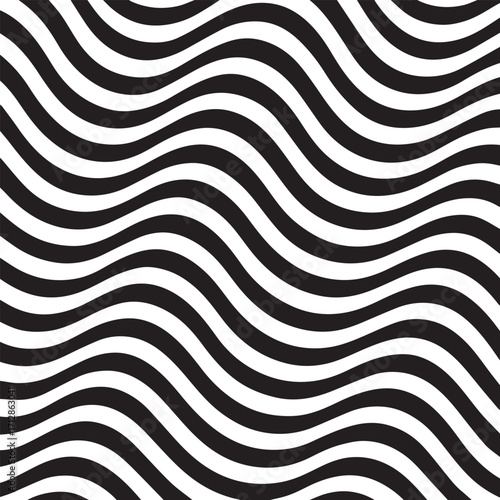 Abstract black and white wavy lines creating a hypnotic optical illusion pattern with a sense of movement and depth