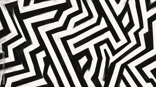 Abstract Black and White Zigzag Maze Design