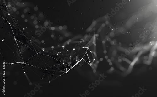 Abstract Black Background with Polygonal Low Poly Mesh and Dots Lines