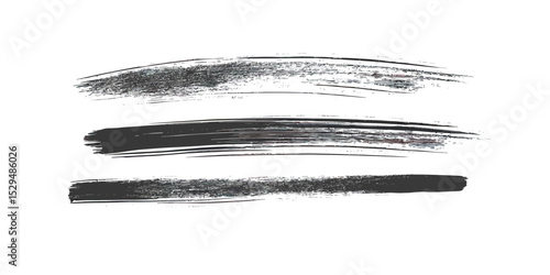 Abstract black brush stroke texture set with grunge rough edges and ink paint style isolated on white background for design and art projects
