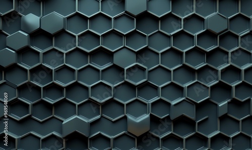 Abstract black geometric background with hexagon pattern, dark grey textured