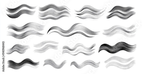 Abstract Black Hand-Drawn Wavy Lines Isolated on White Background
