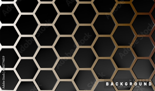 Abstract black hexagon pattern on a technology style of neon gradient background. Honeycomb. Vector illustration
