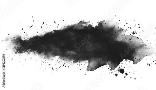 Abstract Black Ink Splash with Artistic Texture on White Background