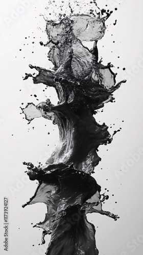 Abstract Black Ink Splatters and Streaks on a White Background, Featuring Bold Contrast and Dynamic Expressive Designs for Modern Graphic Elements