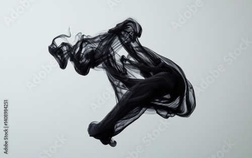 Abstract Black Ink Swirl on Gray Background
