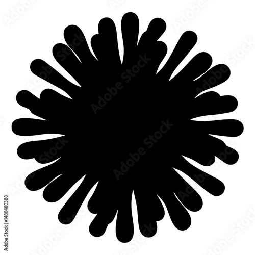 Abstract Black Splatter with Rounded Edges, Radiating Pattern on White Background