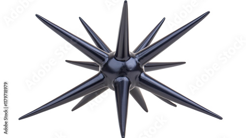 Abstract black star shape with sharp spikes isolated on a white background for creative design and conceptual imagery