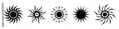 Abstract black sun or zigzag icon set. Sunshine, sunlight black symbol. Vector illustration isolated on white background.