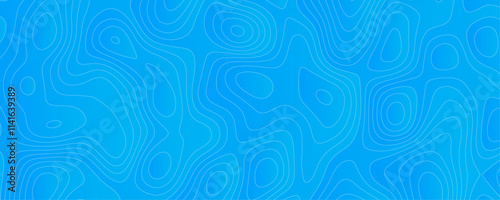 Abstract Black white and sky blue vector topographic map background. Lines Topographic contour lines vector map seamless pattern. thin curved wavy lines topology on a blue color background.