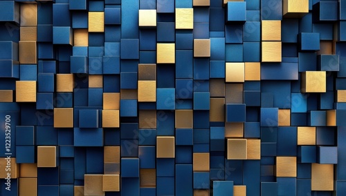 Abstract Blue and Gold Cube Mosaic: A Luxurious 3D Texture