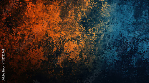 abstract blue and orange background with waves, dark and grainy