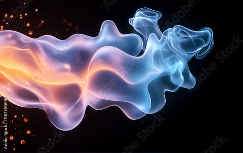Abstract Blue and Orange Glowing Energy Waves Digital Art Fluid Motion Background