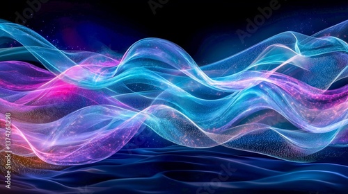 Abstract Blue and Pink Waves with Glowing Particles