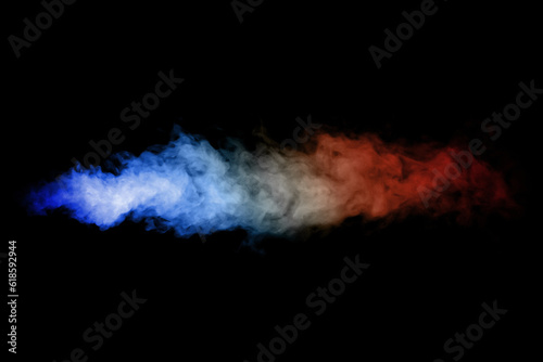 Abstract blue and red smoke steam moves on a black background . The concept of aromatherapy. France color Bastille Day.