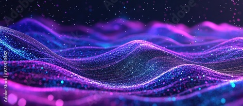 Abstract blue and violet wave texture with luminous blurred particles Digital landscape background representing technology or cyber themes 3D rendering