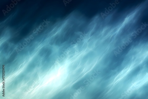 Abstract blue and white background with blurred light patterns and cloud like formations